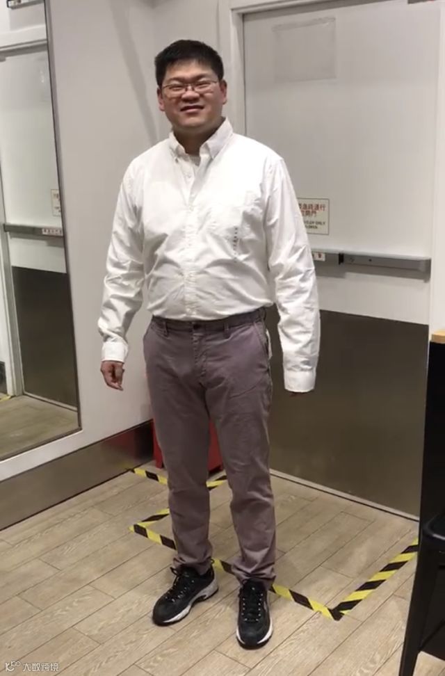 接到改造任务后,我们先观察了一下他的身高比例,出于他的职业考虑,改造的风格趋于成熟稳重的正装,于是我们首先尝试了白衬衫搭配西裤的保守打扮,略显老气,第一方案out!再尝试了各种色彩搭配后,最终选定了由白色t恤打底,蓝白条纹休闲西装外套搭配蓝色束口长裤的装扮。男生的发型选择比较少,清爽利落的短发可以为新造型加分不少。