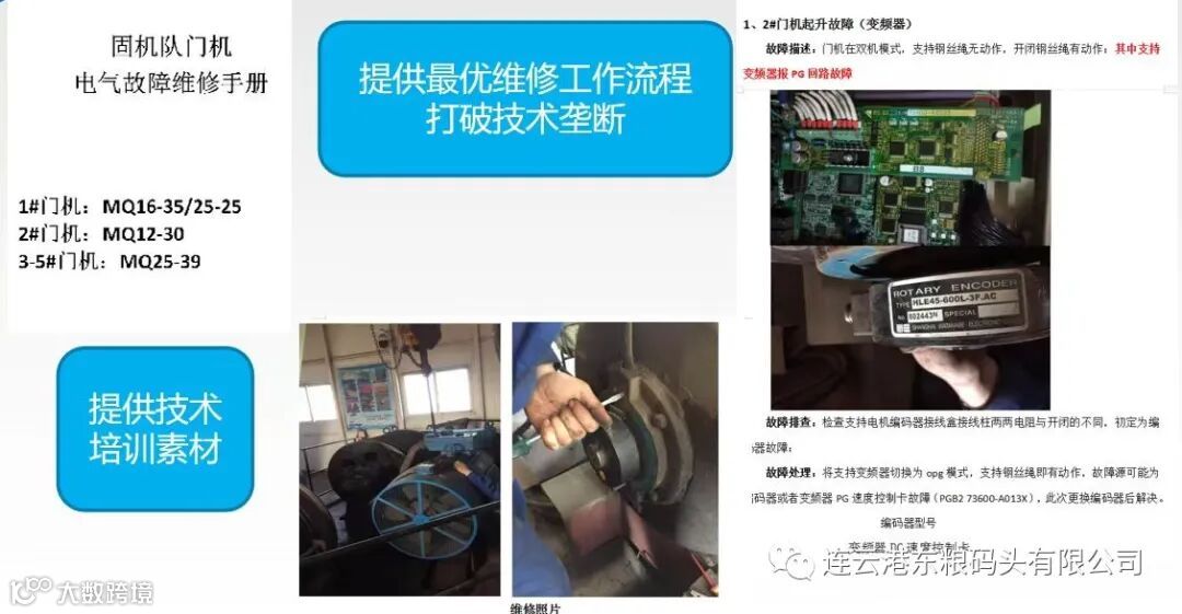 邱师傅的一次次对决把工匠精神“种”进了我的心里,我深深感受到他不仅对设备的日常维修、还是设备故障难题都能做到迎刃而解。他对我说我们要想干这好一行,日常要对每个设备做好检查、保养和周围环境的清洁。码头设备、变电所及每一个开关等都要及时做好自查排查隐患,在问题没有扩大之前就“扼杀在摇篮里”。邱师傅认为技术创新就是消除事故隐患的终极手段,因此每查到一个隐患,他总是想方设法尝试、创新可行性方案,以彻底消除故障隐患。有一次,一期装车PLC通讯故障.通讯时好时坏,在检测时更换了所有的通讯部件后发现最终的原因是电源不稳定。为了解决这个难题邱师傅利用系统废弃的线路给铁牛的控制系统增加了一套保留所有安全保护而不经过PLC通讯的备用控制方式,不但利用了废弃的材料,关键是从根源上解决了这个隐患。