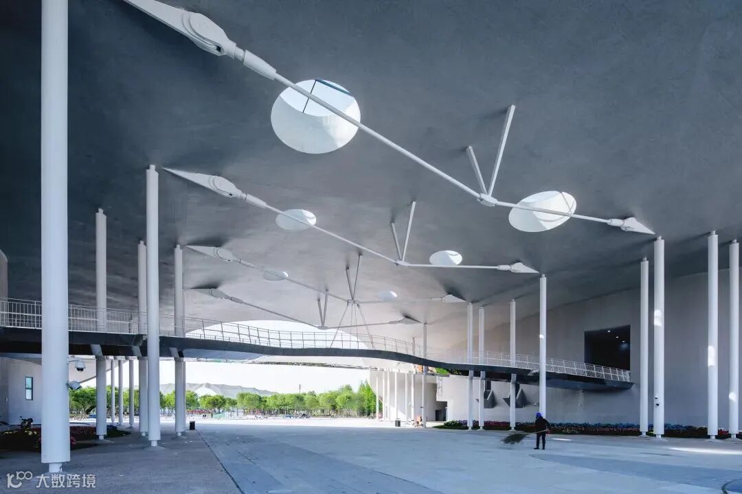 △复兴馆折叠大屋面打造出波澜壮阔的建筑形态,挑檐环廊成为室内功能和室外园区的过渡空间,可持续使用的设计理念成就“勤俭办博”。