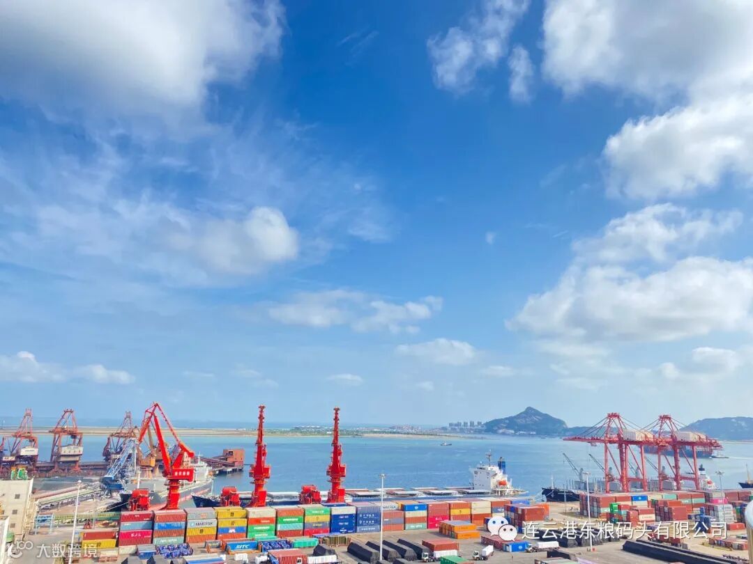 连云港港,东粮公司,33泊位,专班作业进行中。