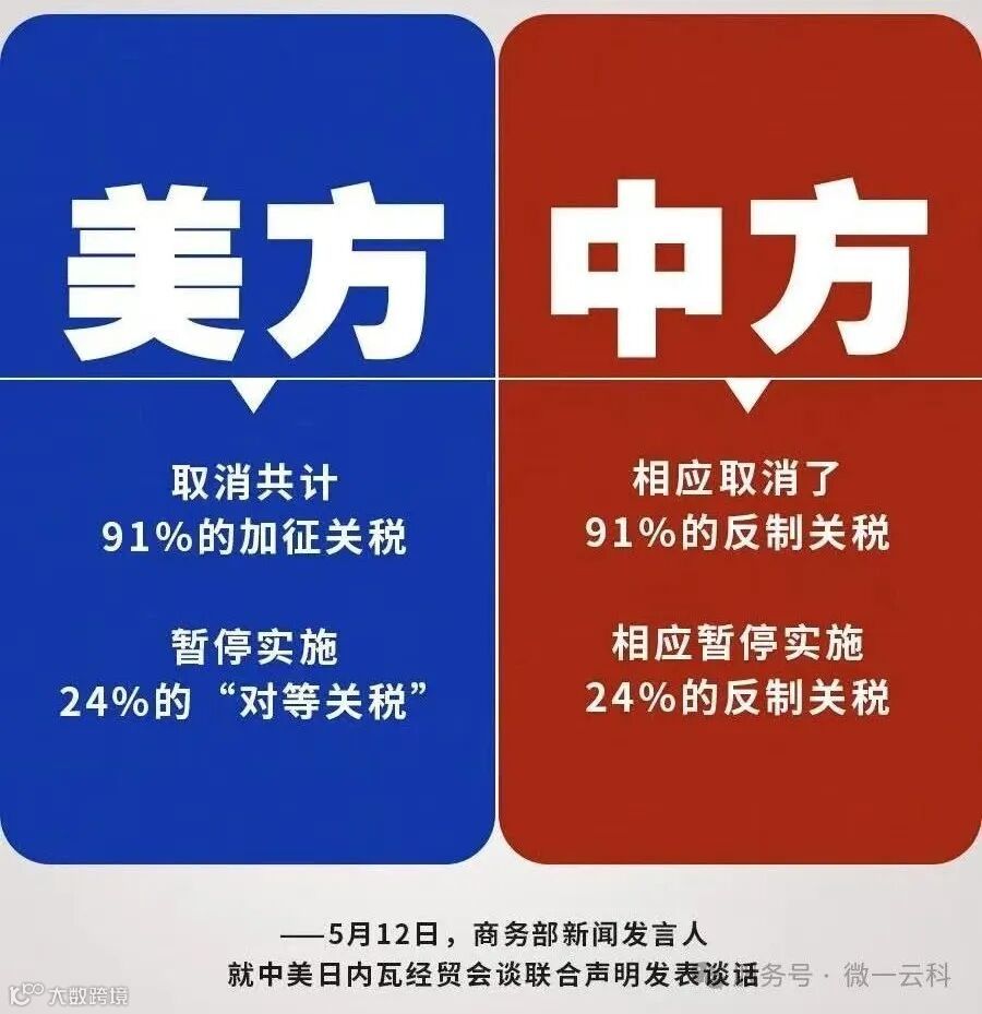 1. 短期缓解:双方关税从峰值145% vs 125%降至34% vs 34%,这显著降低了贸易成本,对双方的进出口企业来说,都是重大利好,意味着更多的利润空间和市场机会。