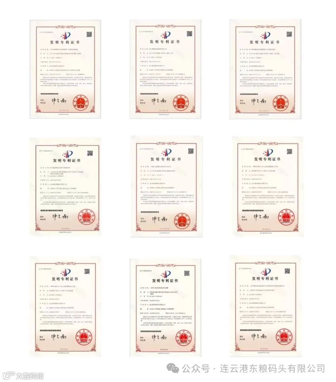 2022年7月22日,公司取得首件国家发明专利证书,至今已累计取得9件发明专利,填满了科技之家发明专利“九宫格”,涵盖门机卸船控制系统、散粮装火车系统、散粮输送设备、散粮取制样系统、粮情测温及化肥割包作业、行车集控等全领域生产范围。
