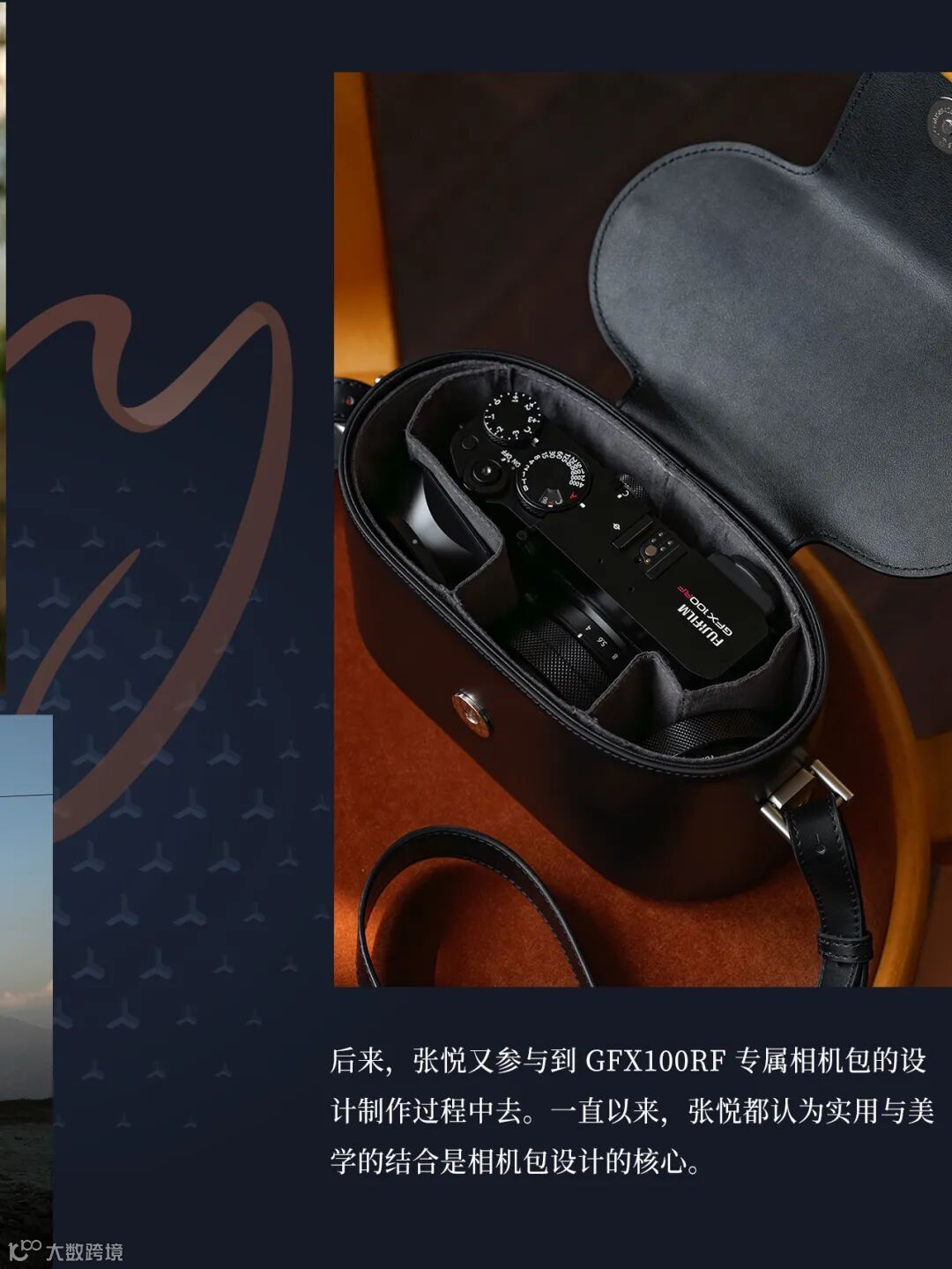 后来,张悦还参与到了 GFX100RF 专属相机包的设计制作过程中去。张悦一直认为实用与美学的结合是相机包设计的核心。保护性要如同量身定制的西装般贴合,操作体验要像从口袋取手机一样直观自然。