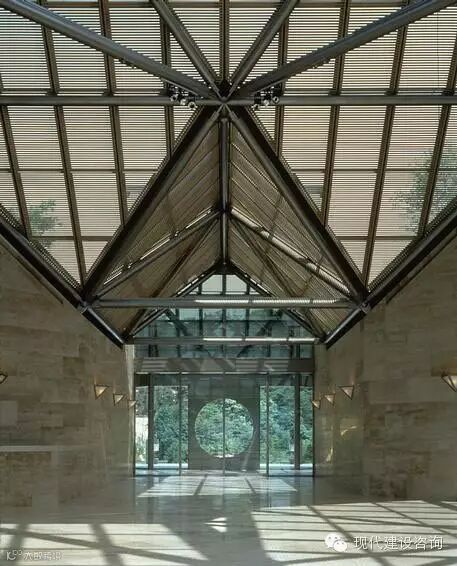他设计的许多大型建筑遍布世界各地,其中位于华盛顿市的美国国家美术馆东馆、法国巴黎卢浮宫扩建工程、中国银行香港分行大厦等作品为世界建筑史留下经典杰作。1999年在北京建成的中国银行总部大厦是贝聿铭建筑设汁生涯中的最后一项大型建筑设计项目,耗时七年,大楼的—砖一木,—水—石皆凝聚着他的心血。该大厦楼内有园,似北京四合院,园内水池中自云南石林采来的黑石分布有致,两侧竹丛相映成趣,在空间组织上将中国传统设计手法运用得十分精到。