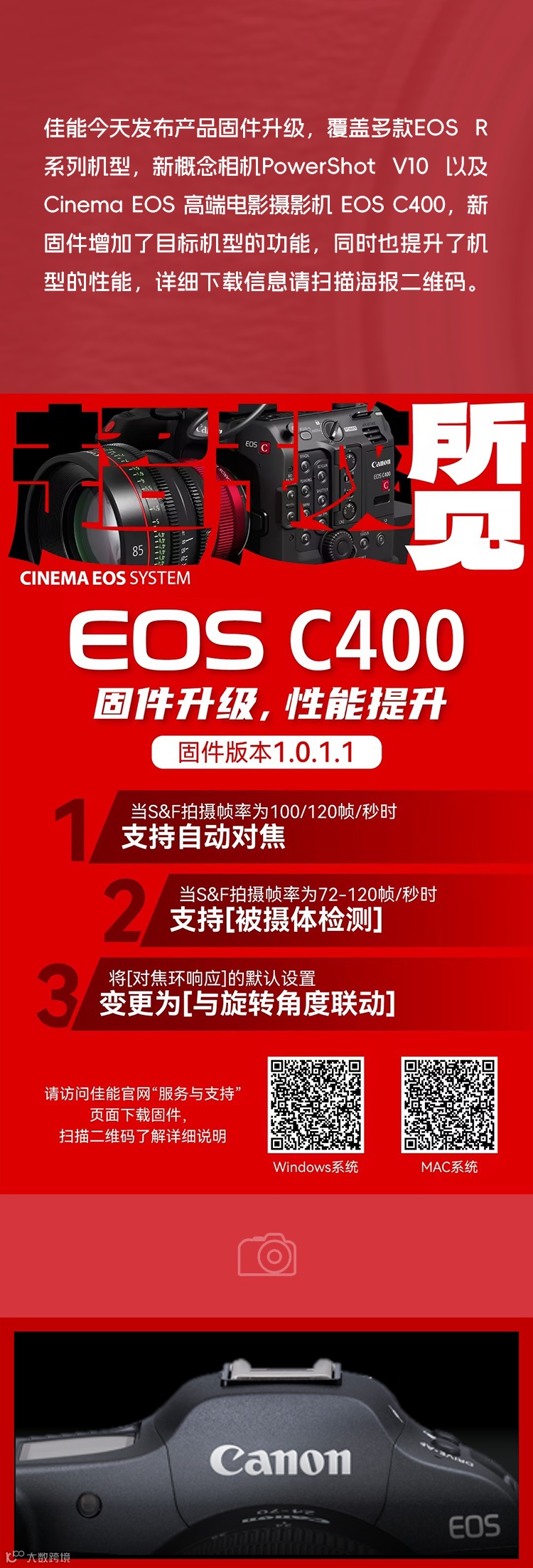 佳服务丨佳能发布多款产品固件升级