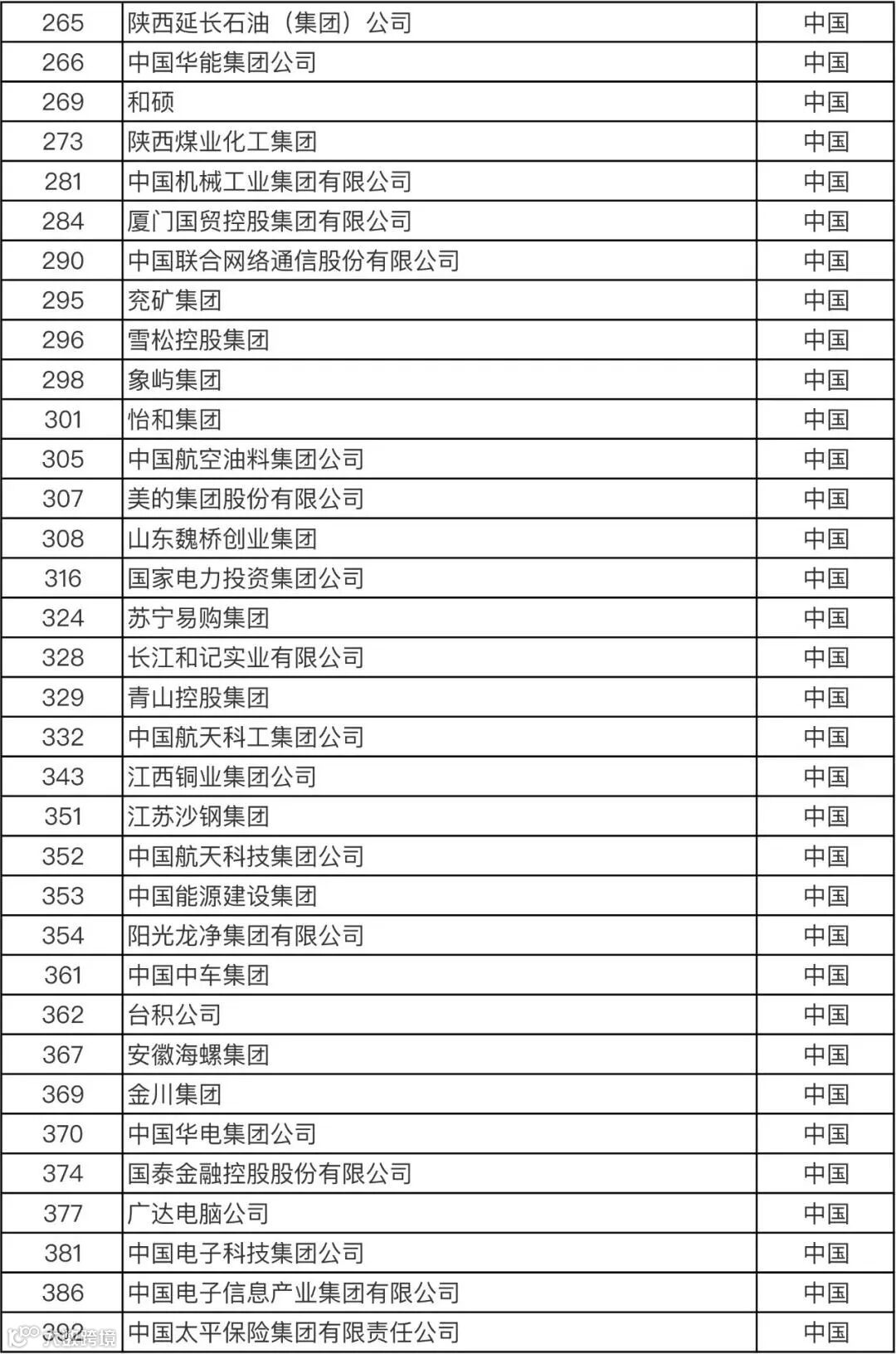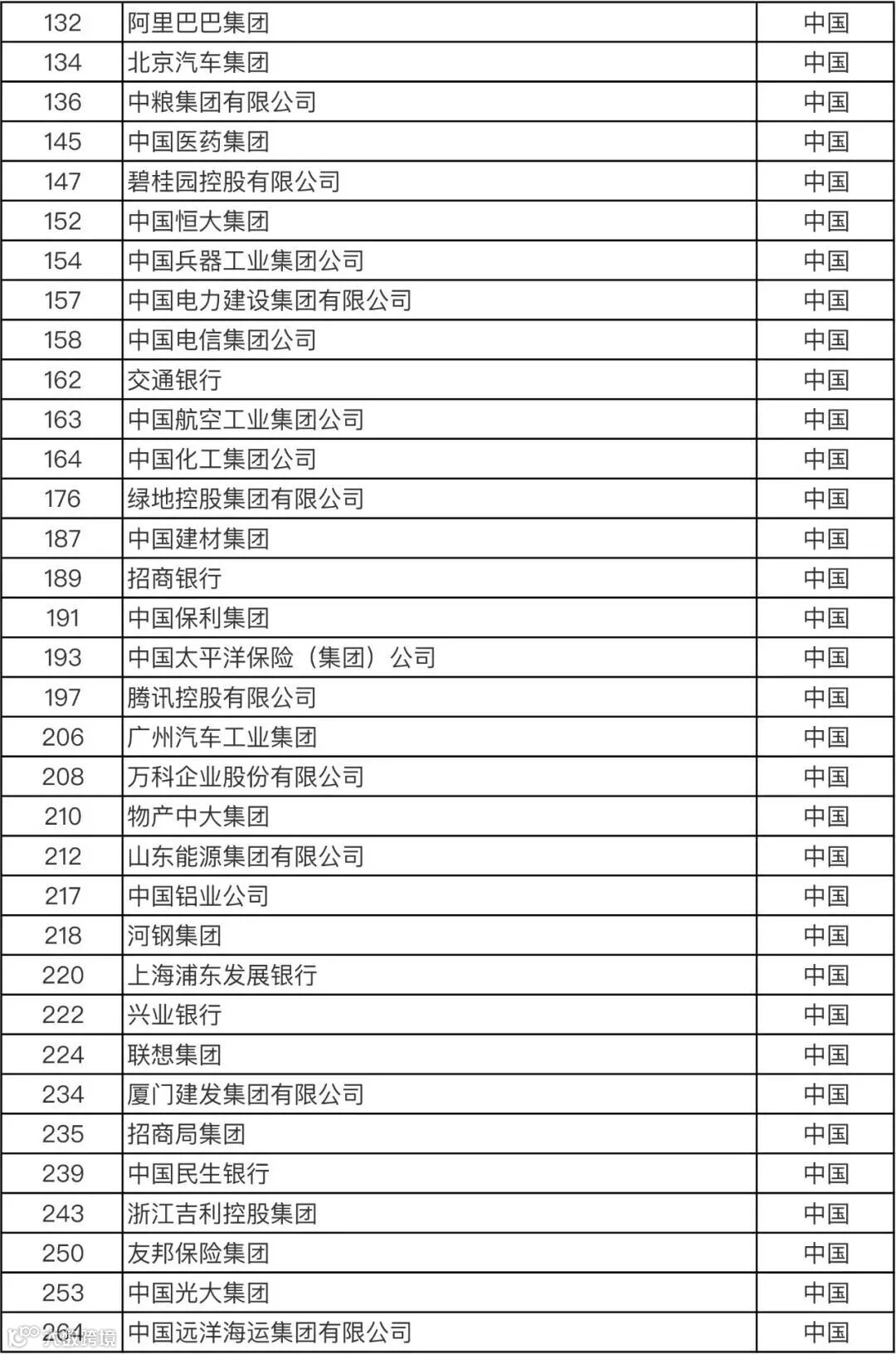 继去年首次超过美国后,中国上榜企业数量继续领先,稳居全球第一。