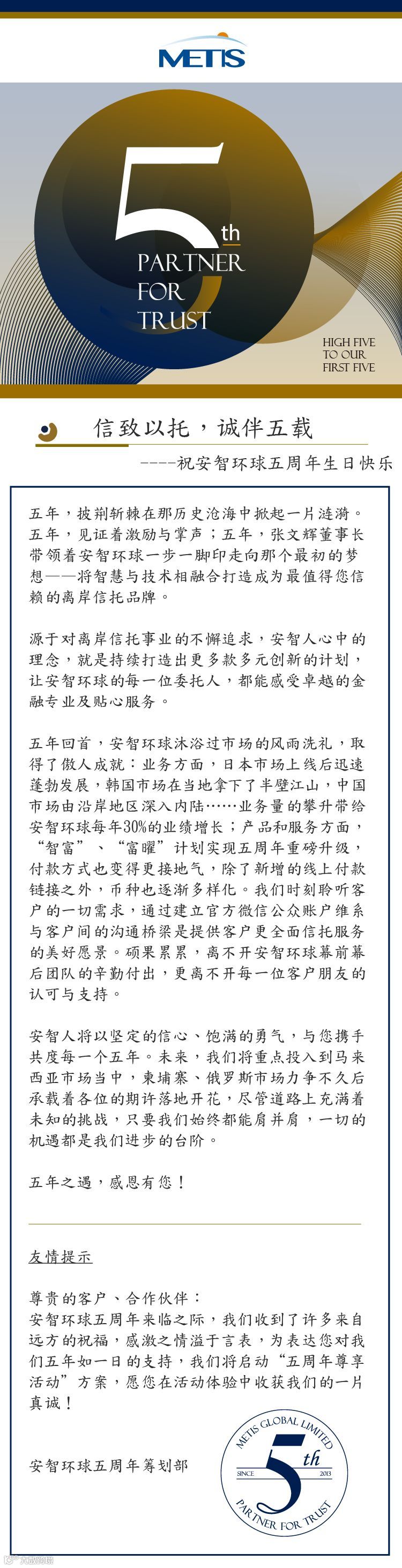 安智依据香港《受托人条例》及《公司条例》在香港注册成立及进行登记,帮助客户成立信托计划,实现长远的财富保值、增值、风险防范和财富保全的目标,富传三代,共创美好未来。