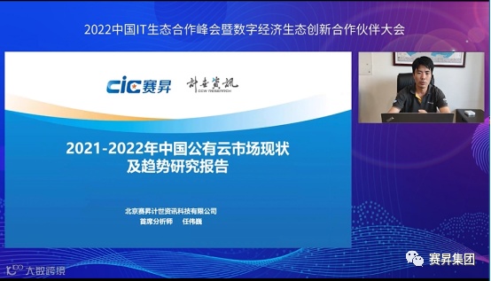 在下午的云服务专场上,赛昇计世资讯首席分析师任伟巍发布了《2021-2022年中国公有云市场发展现状与趋势研究报告》,对2021-2022年中国公有云市场的演变和关键驱动要素进行了复盘,对新环境下公有云市场的发展方向做了展望。
