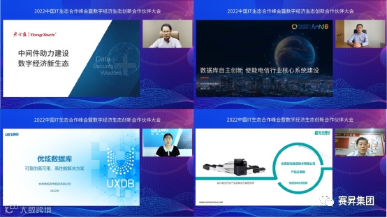北京东方通科技股份有限公司资深专家、技术咨询总监曾鹏冰,北京辰光融信技术有限公司产品经理陈占福,优炫数据库产品经理岑艳霞,亚信科技AntDB数据库产品经理烨思分别从数字经济新生态建设、数据库自主创新等方面进行深入分享。