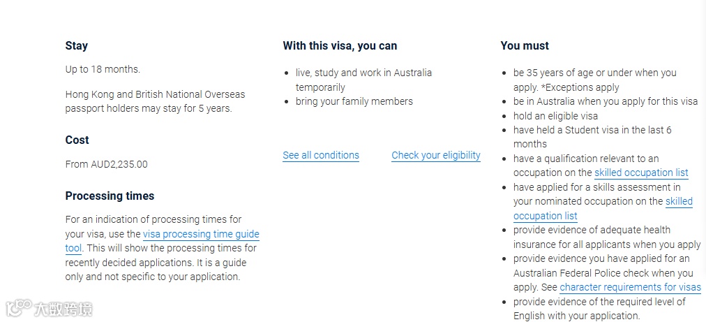 485 PHEW(高等教育类毕业生工作签证):适用于完成澳洲本科、硕士或博士课程的留学生。