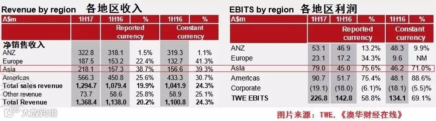 ACB News《澳华财经在线》报道,财报显示,TWE运营的四个地区中,亚洲市场增长表现最为突出,EBITS增长75.6%,达7900万澳元,EBITS利润率36.2%,反映出公司在业务模式优化、客户合作及品牌塑造方面持续投资的成效。