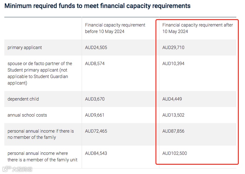 受抚养子女的资金证明要求从 3,670 澳元提高到 4,449 澳元;