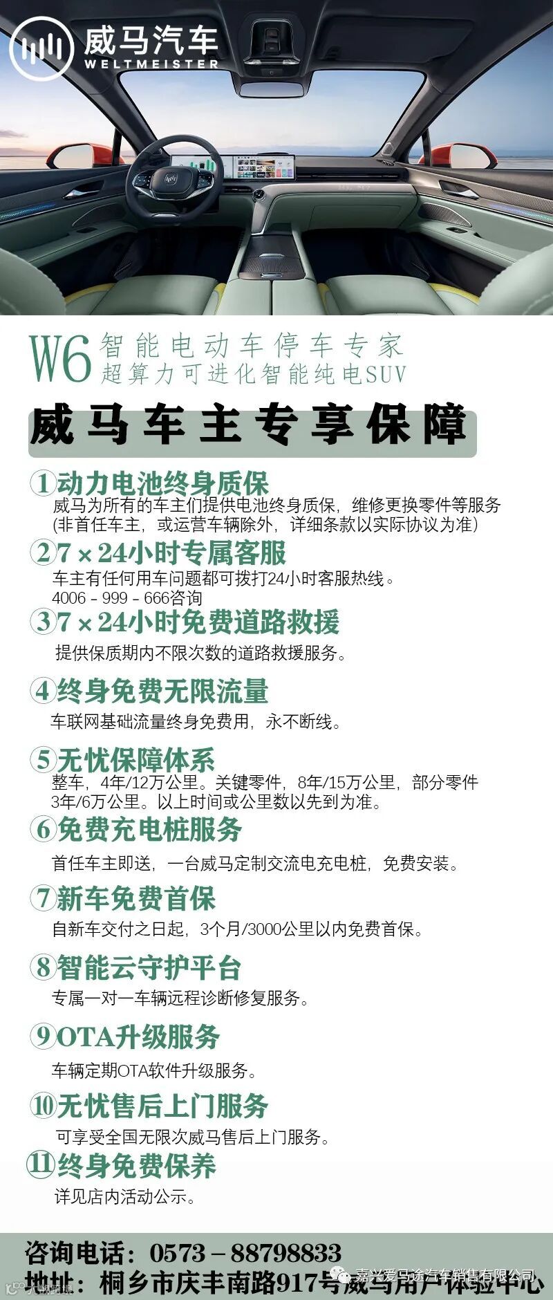 我们更是竭尽所能为我们嘉兴爱马途的车主们申请到了11项威马车主专享福利