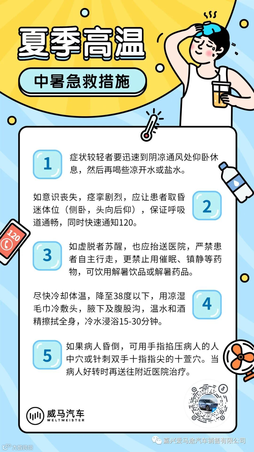 中暑之后应该如何应对,威马也给大家整理出来了一些急救措施