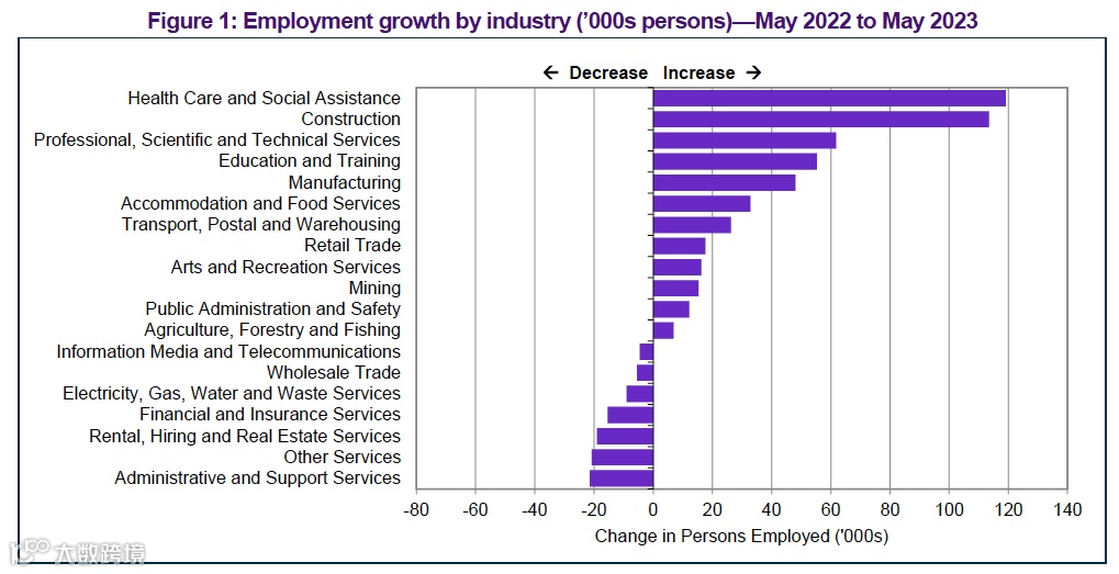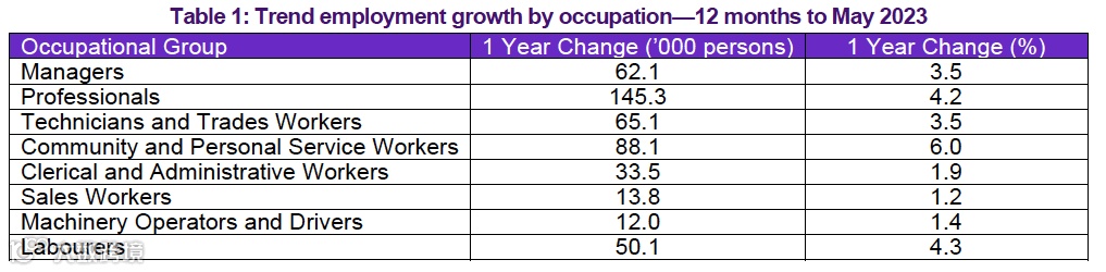 各行业的就业变化,常见移民职业:如护理、工程、IT、建筑师、教师等,就业人数均上涨。