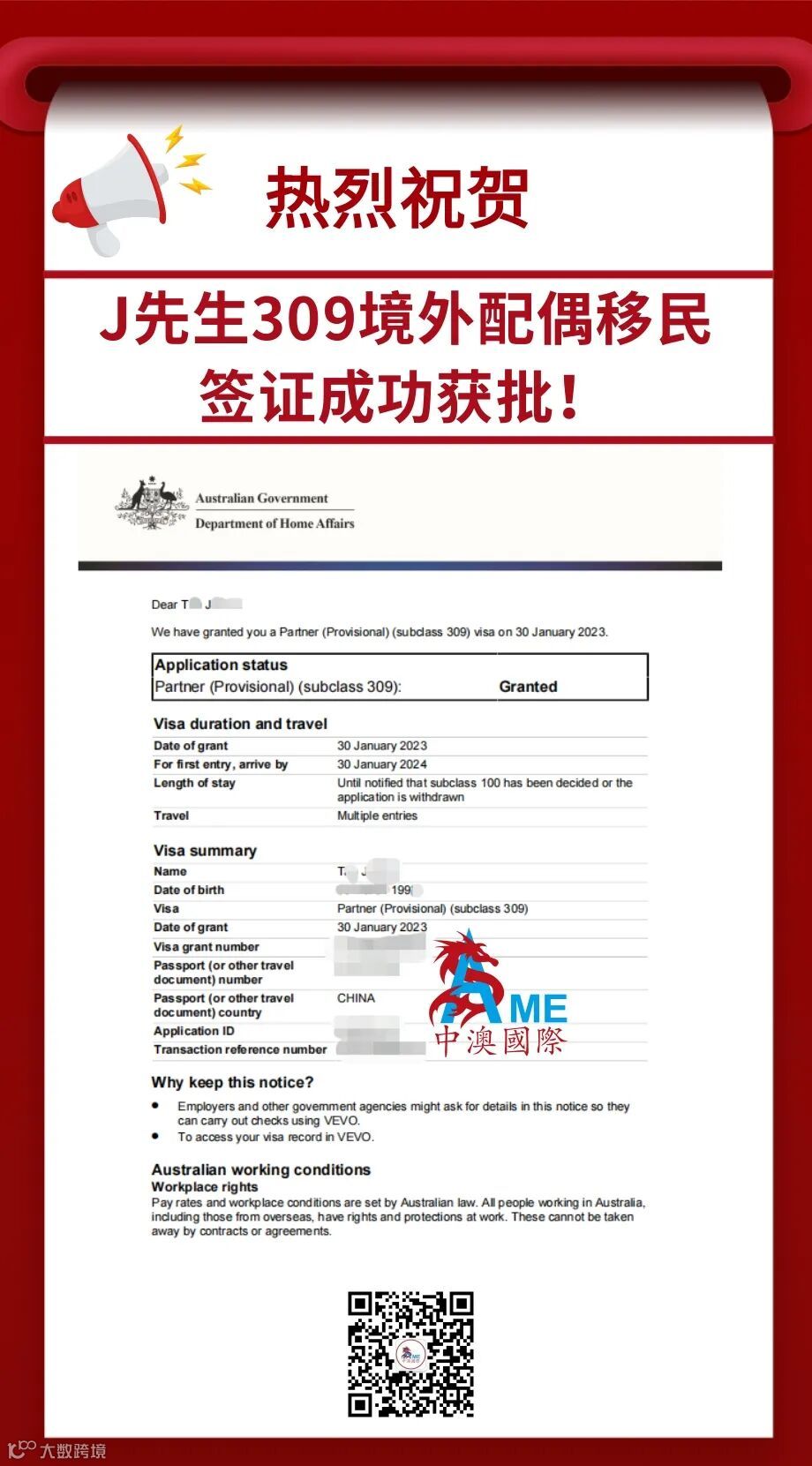300签证获批,申请人在规定期限内入澳; -