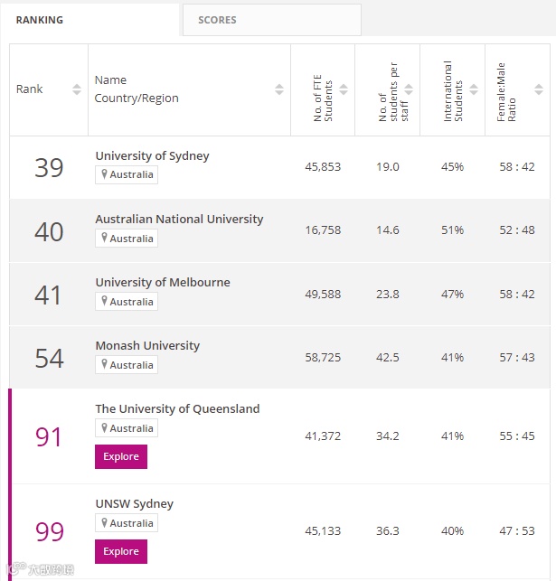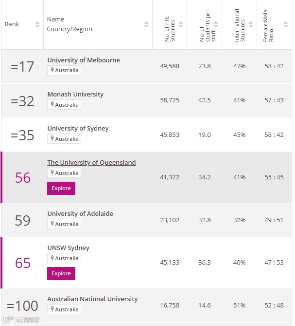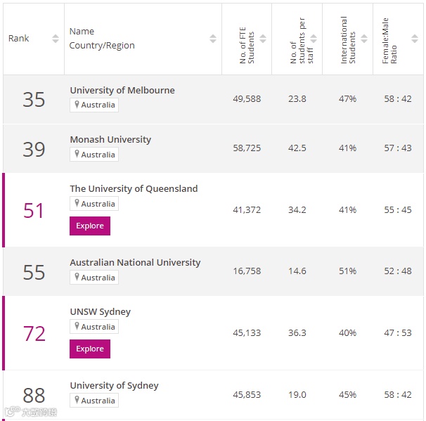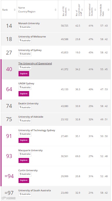澳洲地区,以下这些大学在工程学领域进入全球前100,分别是: