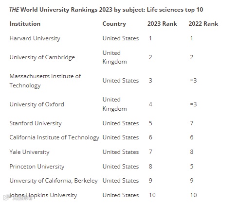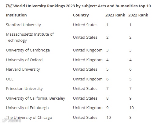 全球范围内,排名前10的大学被美国和英国包揽: