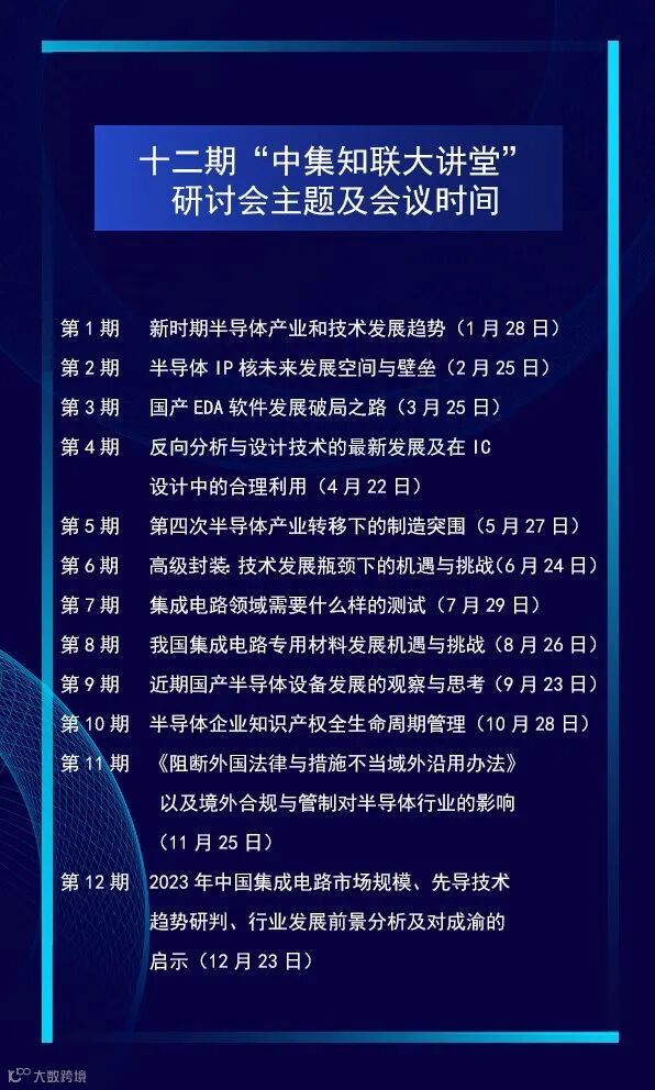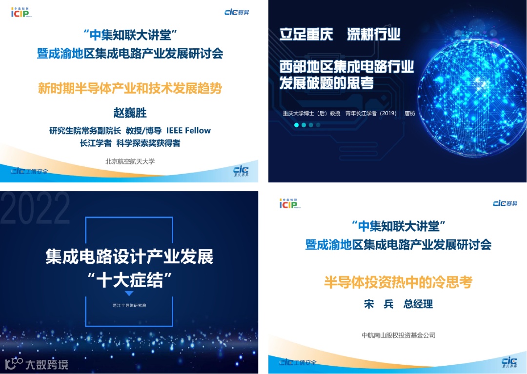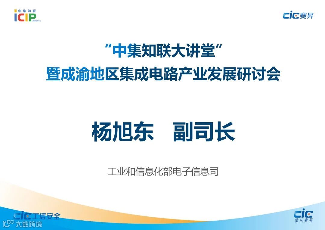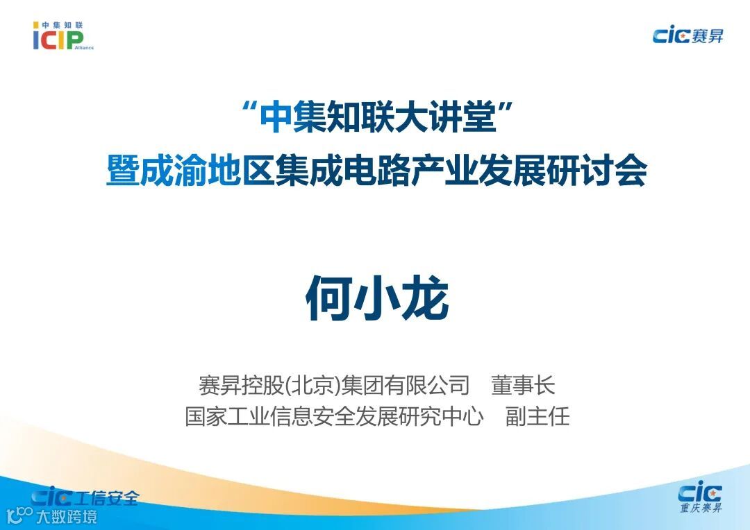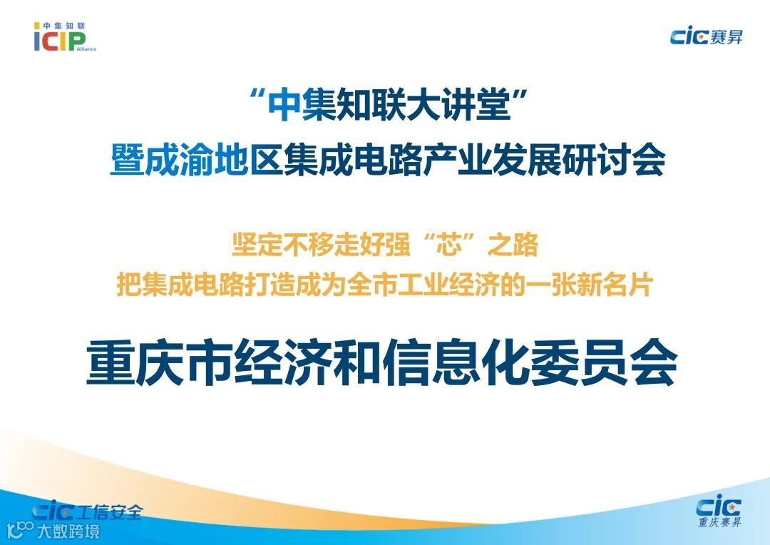 为更好解读集成电路产业相关政策及行业动态,交流前沿技术,分析市场趋势,搭建沟通桥梁,撮合潜在商机,加强产学研用融合作,提升成渝地区集成电路产业集群的凝聚力,2022年1月28日,在工业和信息化部电子信息司、重庆市经济和信息化委员会、国家工业信息安全发展研究中心(工信部电子一所)的支持下,国家工信安全中心·西部中心/重庆赛昇智能科技研究院与集成电路知识产权联盟联合成功举办了首期“中集知联大讲堂”暨成渝地区集成电路产业发展研讨会。