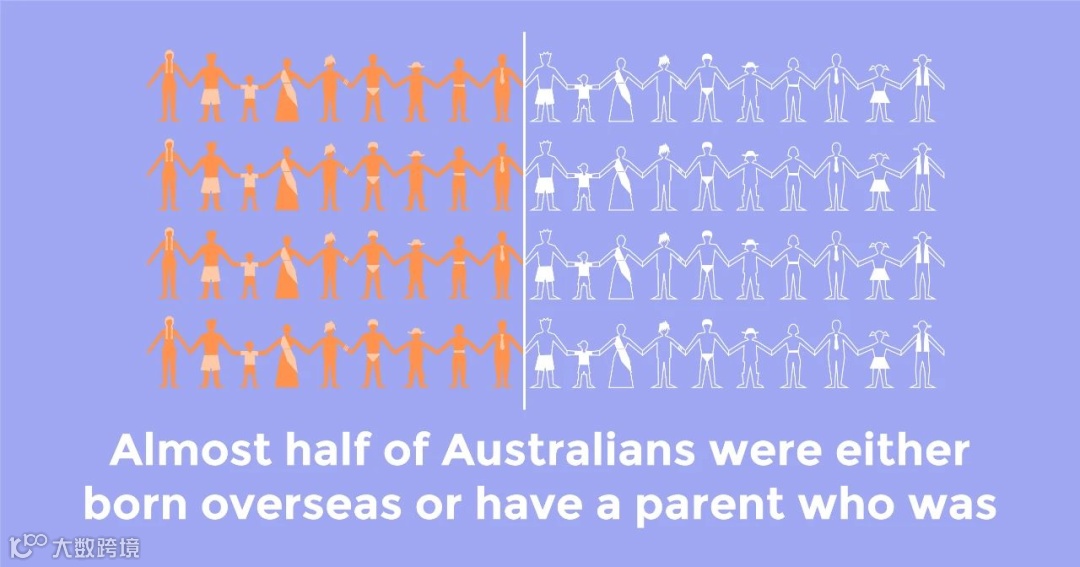 超过半数以上的澳洲人是在海外出生的,或者父母其中一方是在海外出生。