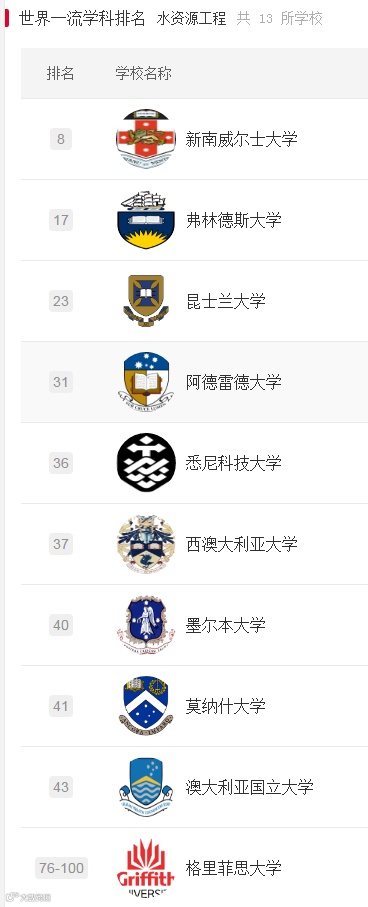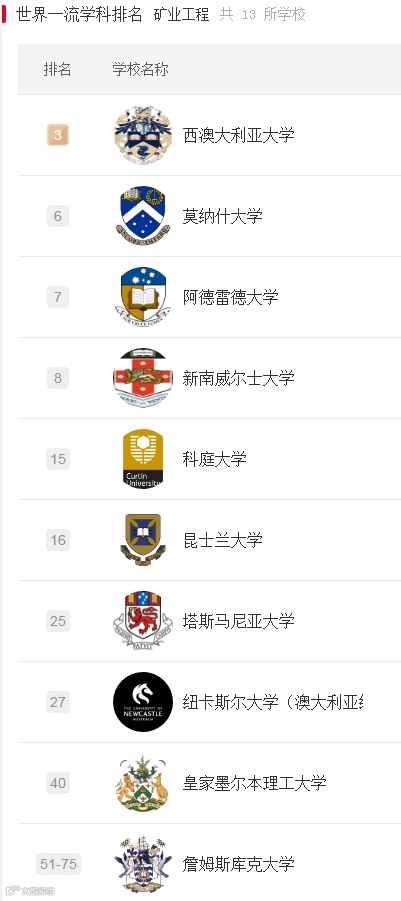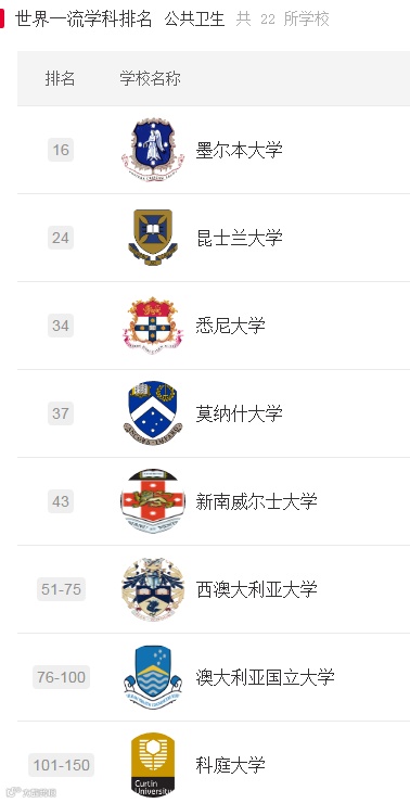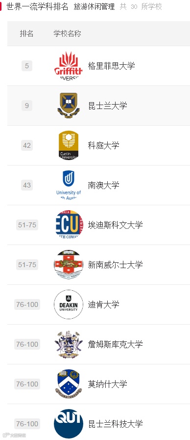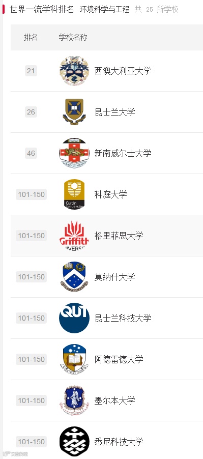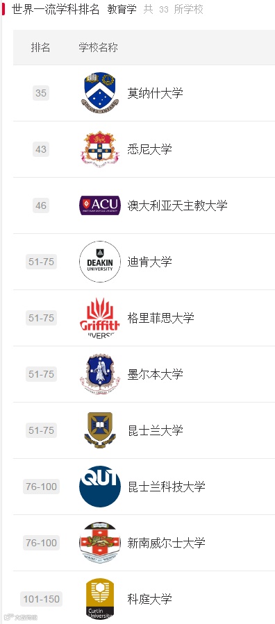 下面一起来看下澳大利亚部分大学的部分学科世界排名吧!