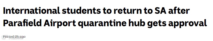 就在刚刚,一大批澳媒都发布了南澳试点计划获批,该州留学生们马上就能重返澳洲的重磅消息!