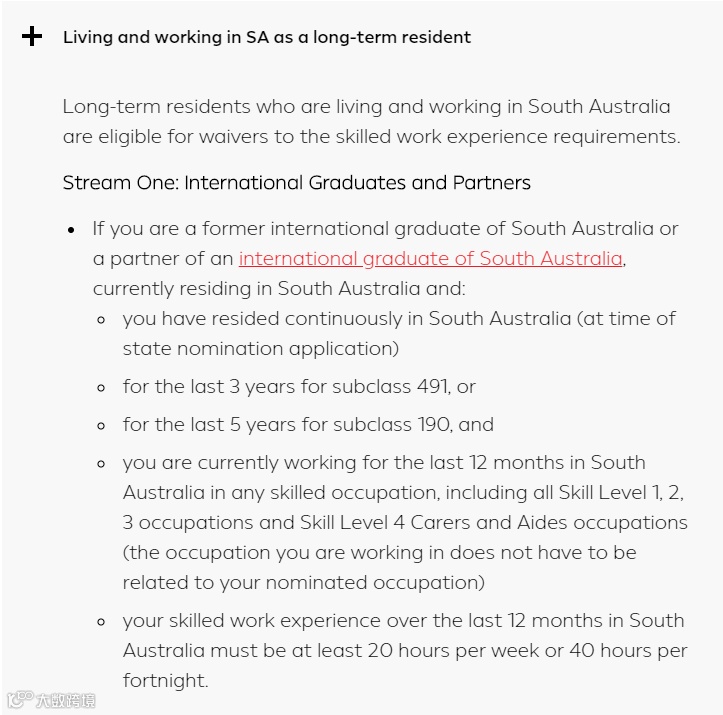 在南澳长期居住的候选人,在满足以下条件时,或可以享受工作经验要求的减少和豁免: