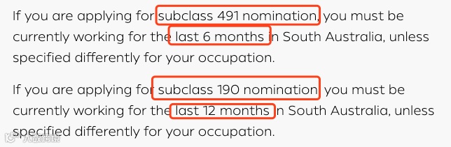 在过去的12个月中,候选人在南澳的工作经验必须为每周至少20个小时或每两周40个小时; 申请人仅能获得491州担保提名。