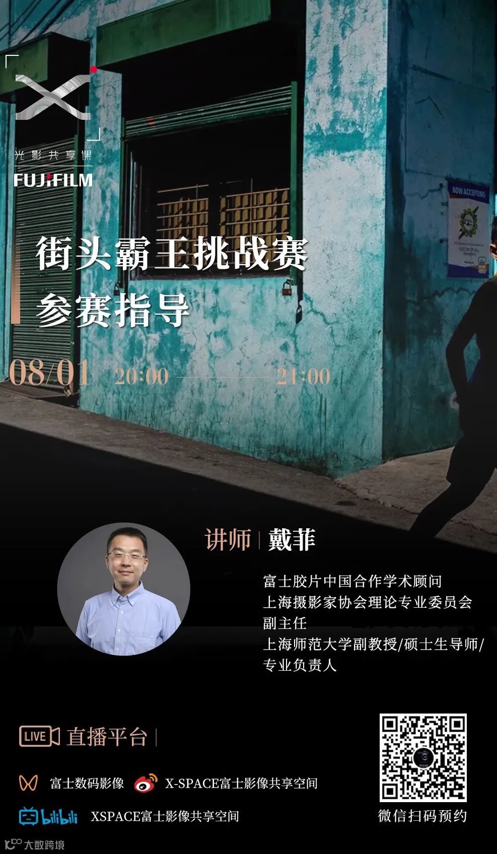 街头霸王挑战赛即将进入最后一个月的征稿期,尚未投稿或者尚未入选月度优秀作品的朋友们仍有最后的窗口期。什么样的作品更受评委青睐?富士胶片中国合作学术顾问戴菲老师,同时也是本届街头霸王挑战赛的评委,即将做客富士光影共享课直播间,与大家即时分享交流。