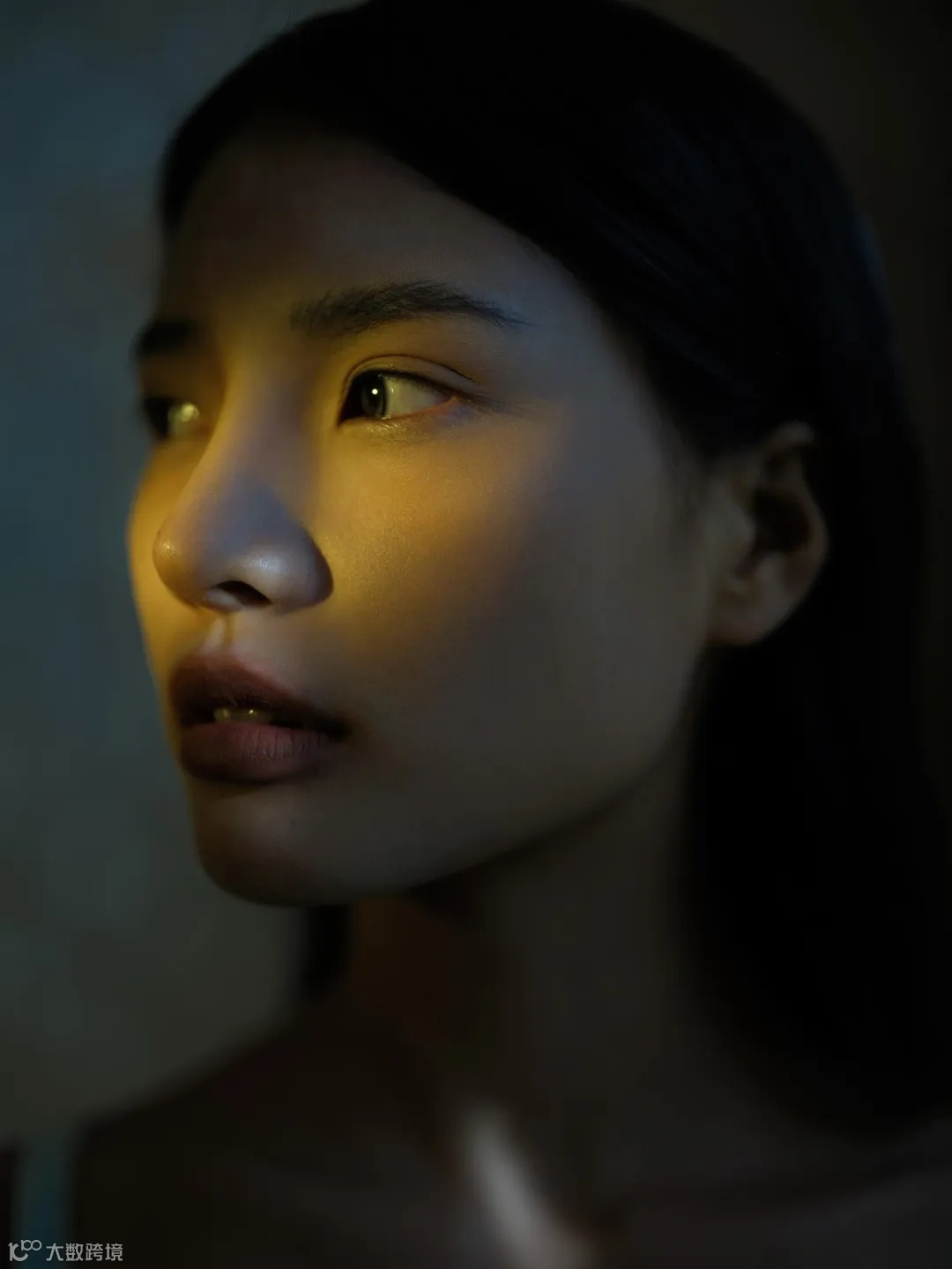 GFX因为自身拥有高像素、高宽容度和高解析度的优势,在拍摄人物肖像时更擅长于暗调或单灯,这样更能体现光影在人物身上的自然过渡,并且,深处暗部的细节也可以通过强大的宽容度得以还原,用暗调来表达,是因为这样更容易将目光吸引到人物身上,甚至可以从眼眸中体会到被拍摄者的情绪,光影有层次的过渡,从亮到暗,可以表达一种内心静谧的神秘感,更加需要拍摄者从模特的眼神中、嘴角的微表情中努力引导出这份神秘感。