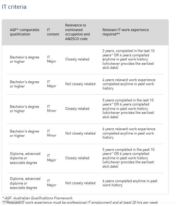 学历要求:完成澳洲本科及以上学位课程,且ICT课程为主修,并与提名职业高度相关。 -