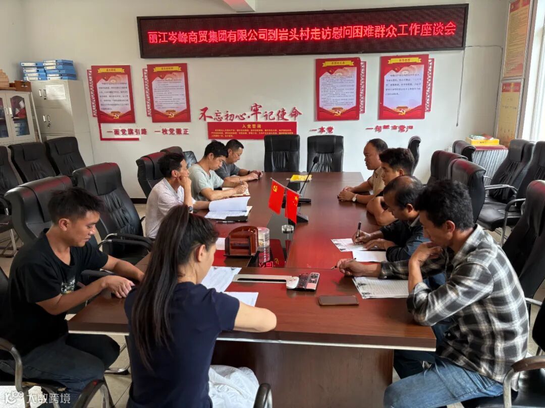 走访结束后,双方在岩头村举行了简短的座谈会。岩头村党支部书记朱真同志和驻村第一书记李智祥同志对丽江市岑峰商贸集团有限公司的爱心善举表示了衷心的感谢。他们指出,企业的关怀不仅带来了物质上的帮助,更重要的是给予了困难群众精神上的巨大鼓舞,让他们深切感受到社会的温暖,增强了战胜困难的信心。随后党支部朱真书记和李智祥第一书记详细介绍了岩头村的基本情况、发展现状、面临的挑战以及当前的重点帮扶工作。特别说明了在巩固拓展脱贫攻坚成果同乡村振兴有效衔接过程中,对困难群体,尤其是高龄老人和残疾家庭的帮扶政策与措施。最后高度评价了丽江市岑峰商贸集团有限公司主动履行社会责任、心系乡村困难群众的行为,认为这体现了优秀企业的担当与温度,为促进乡村和谐、营造互助友爱的社会氛围作出了积极贡献。