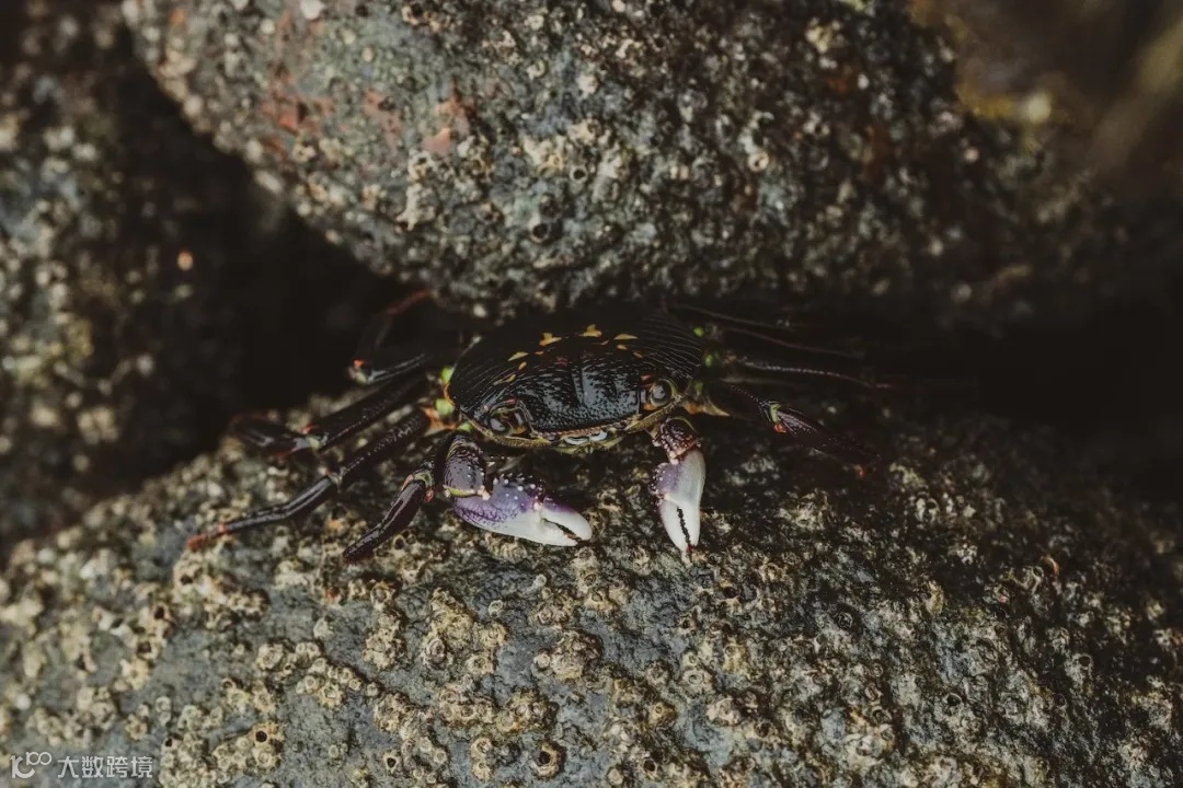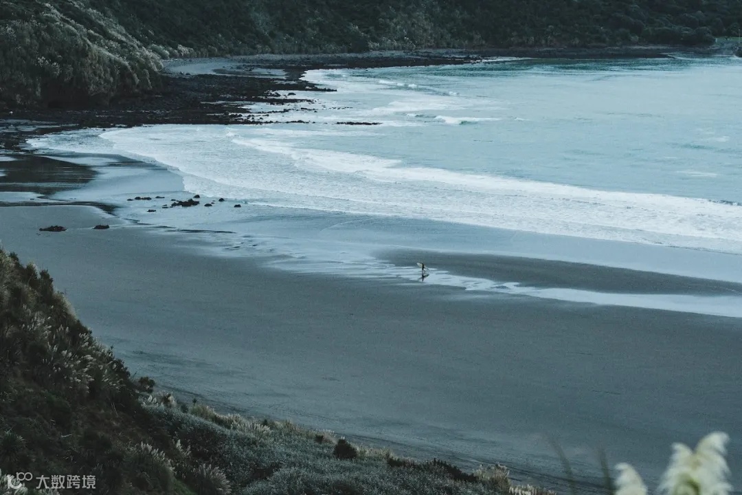 新西兰东海岸布满了绿松石,拥有梦幻般的白色沙滩,西海岸则是崎岖不平的火山地带,有着黑色的沙滩和黑色的岩石。这些小螃蟹突然从洞穴里冒出来了,能够发现这些小螃蟹还挺有意思的,就好像给拍摄现场增添了一个全新的元素。