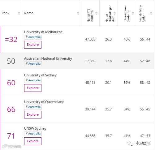 新南威尔士大学更是一口气上升了25名,而Monash也相较去年进步了9名!其他学校像是RMIT、La Trobe 、Deakin都较上一年整整进步了一个50名跨度的区间!上升势头强劲。