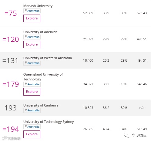 堪培拉大学更是首次进入世界前200名到达193名,之前堪培拉大学的排名一直在251-300之间徘徊。