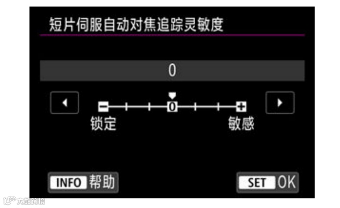 当遇到有物体穿过画面或进行摇摄等录制情况时,便可以利用【短片伺服自动对焦追踪灵敏度】的选项。越靠近减号,焦点会越趋向于【锁定】,以尽可能锁定原有被摄体以防止意外失焦;而越靠近加号,焦点会越趋向于【敏感】,相机将会为积极地追踪进入画面的新主体,便于快速聚焦于新的被摄体时使用。