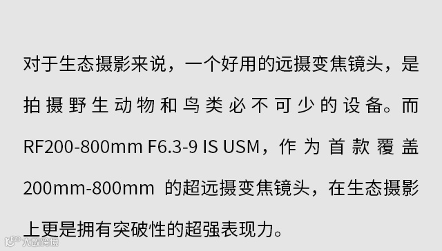 佳能镜头 | RF200-800mm F6.3-9 IS USM,超强生态表现力!