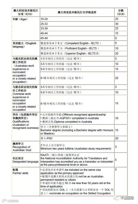 让我们祭出一张澳洲技术移民打分表,大家不妨算一下自己的分数。