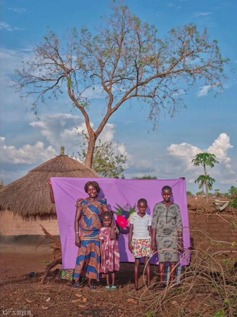 这里80%的人口是妇女和孩子,他们给我们看这些手工绣得很漂亮的床单,这是他们从南苏丹的战争中逃离时,从家里带来的为数不多的物品之一,当时我们就问,能不能请你站在这些床单前面,让我们给你拍张照片,于是我们就开启了这个站在床单前面拍照的系列。