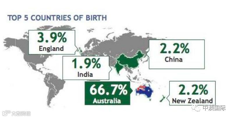 众所周知,澳洲是一个移民国家,要深究在澳族群收入,先要来看一组关于澳洲人口出生国的数据。