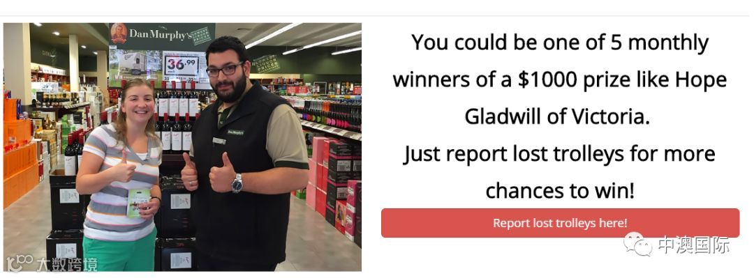 对于那些报失手推车的顾客,澳大利亚超市每年提供价值6万元的巨额奖励。