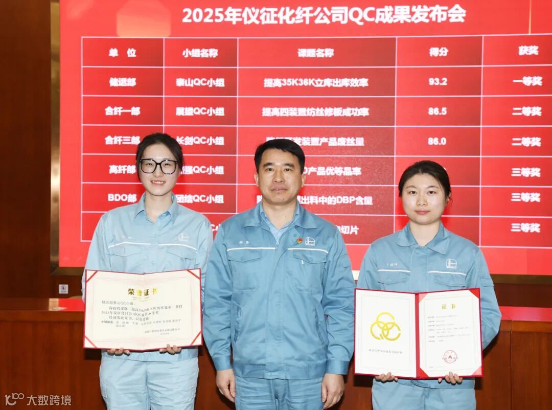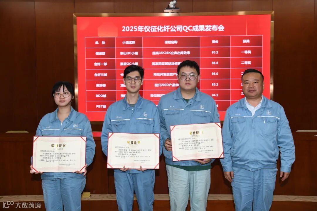 经过评比,储运部泰山QC小组获得一等奖,合纤一部展望QC小组、合纤三部长剑QC小组获得二等奖,高纤部加强QC小组、BDO部团结QC小组、PBT部鹤舞白沙QC小组获得三等奖。另外,储运部泰山QC小组还荣获全国优秀QC小组成果奖。