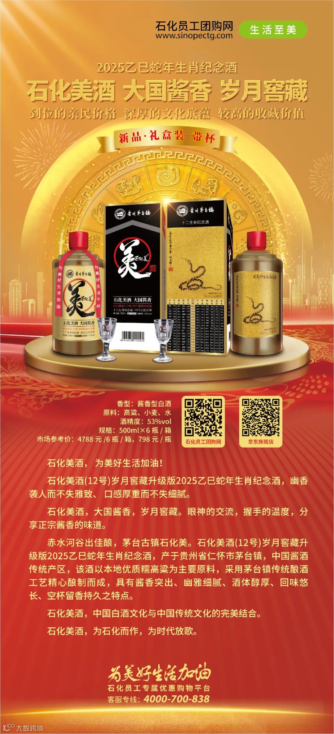新年伊始,万象更新,2025年货节火爆进行中,石化员工团购网为大家准备好了一份蛇年春节团圆好礼——石化美酒(12号)岁月窖藏升级版2025乙巳蛇年生肖纪念酒,下单还有好礼赠。