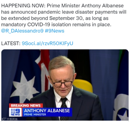 总理Anthony Albanese宣布将在9月30日后继续发放隔离补贴,直至强制隔离政策结束!