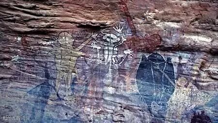 一直有人猜测,乌鲁鲁国家公园中那些古老的岩石绘画描绘的其实是外星人光临地球的故事,这是外星人造访地球的证据。