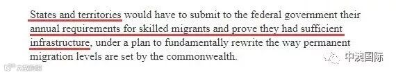 每个州和领地上报 他们需要技术移民的数量 以及要证明有足够的 基础设施、城市规划 来支撑这些移民水平!