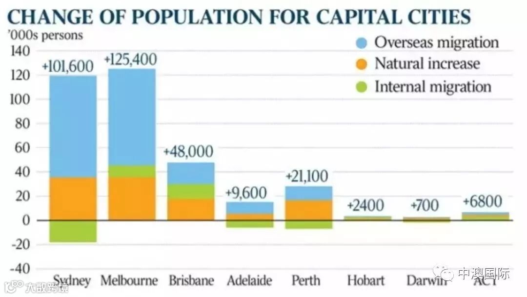 以悉尼和墨尔本为首出现了大量的增幅,飞速增长的人口让这些城市倍感压力。