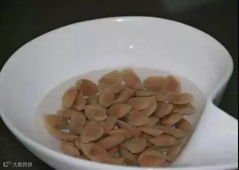 将刮去表面的咖啡色薄膜的种子放进去浸泡