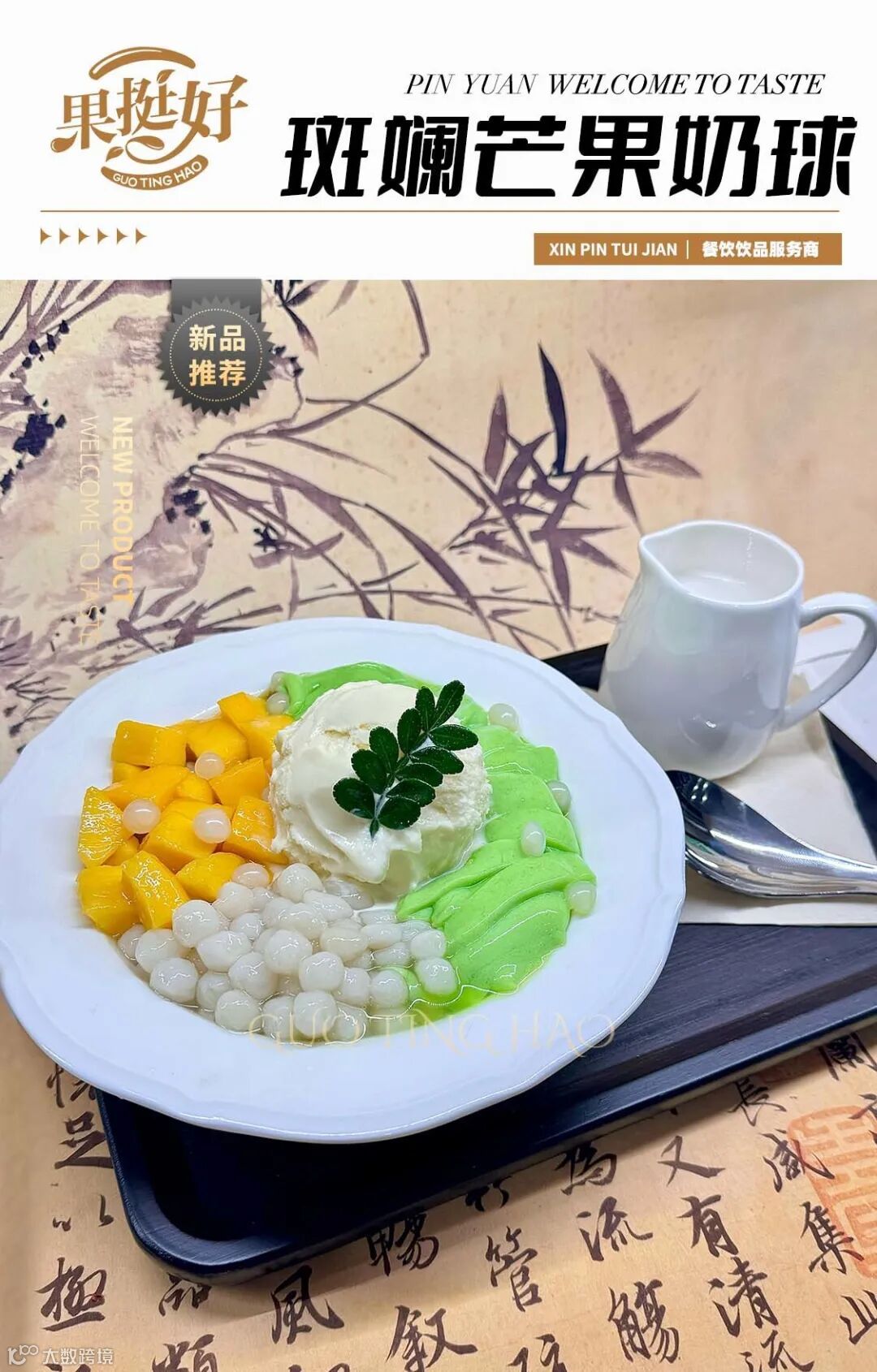 •斑斓芒果奶球:糯米丸子 + 芒果 + 斑斓面条,冰火交融的奇妙口感,夏日吃简直透心凉!