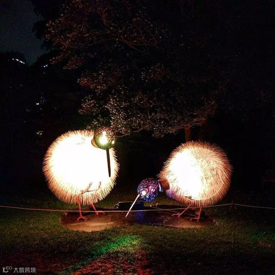 各种植物披上华丽的灯光外衣,飘飘洒洒迎风飞舞,行走其中,别有一番滋味。